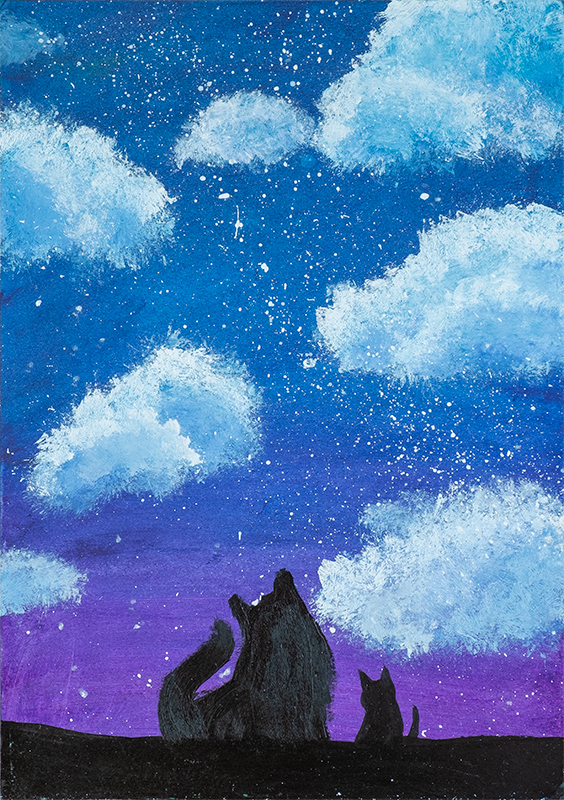 「 夜空を見上げるネコ 」