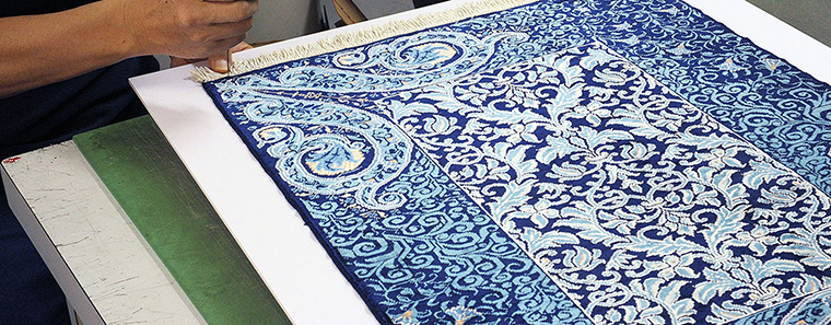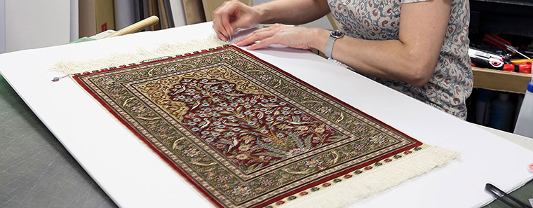 当店の絨毯額装は、丁寧で綺麗な仕事、磨かれたセンスでご好評を頂いています
