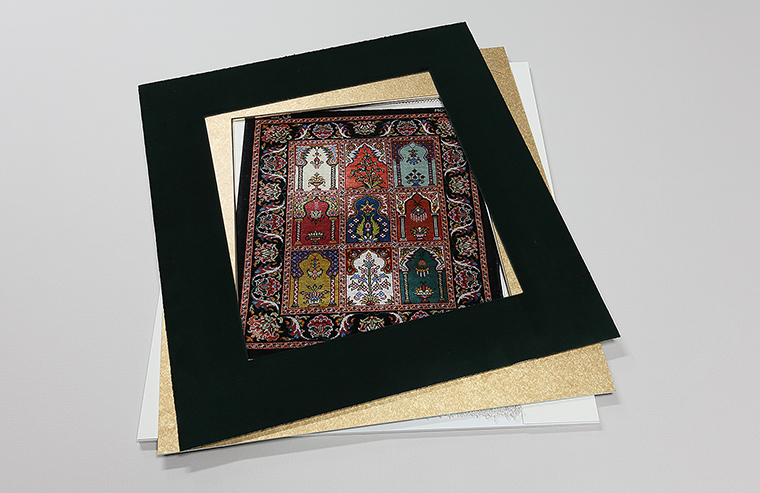 特別大きな絨毯を除き、ほとんどの額装はフレームとマットで構成されます